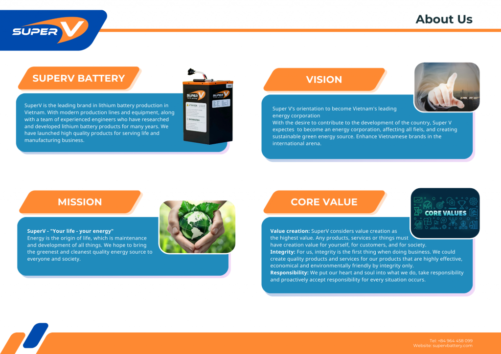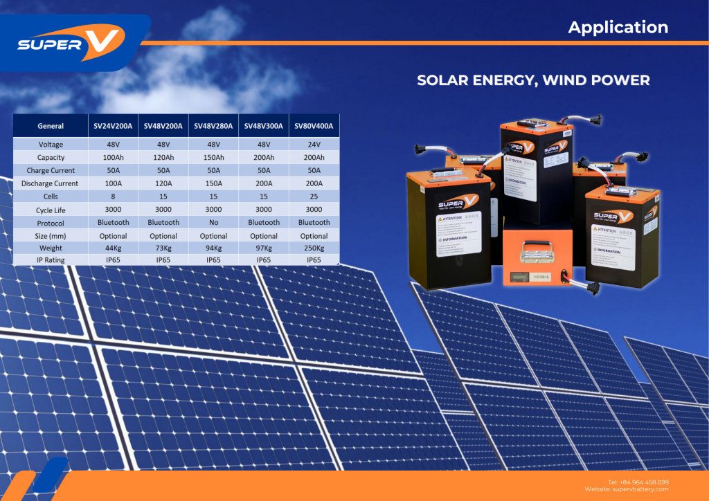SuperV Battery, đối tác hàng đầu về các giải pháp năng lượng đáng tin cậy, tập trung vào chất lượng và sự đổi mới. Chúng tôi cung cấp pin lithium chất lượng cao và không ngừng nghiên cứu để đáp ứng nhu cầu đa dạng của thị trường. Là người bạn đồng hành sáng tạo của bạn, chúng tôi cam kết cung cấp các giải pháp năng lượng tối ưu. Hãy chọn SuperV Battery để trải nghiệm sự đổi mới và tận tâm trong từng chi tiết.